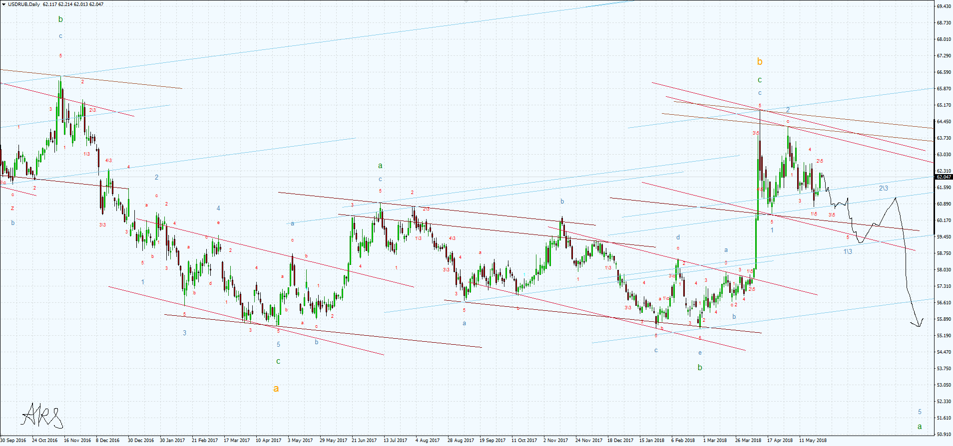 | Волновой анализ EurUsd, GbpUsd, UsdRub 19.05.2018 |